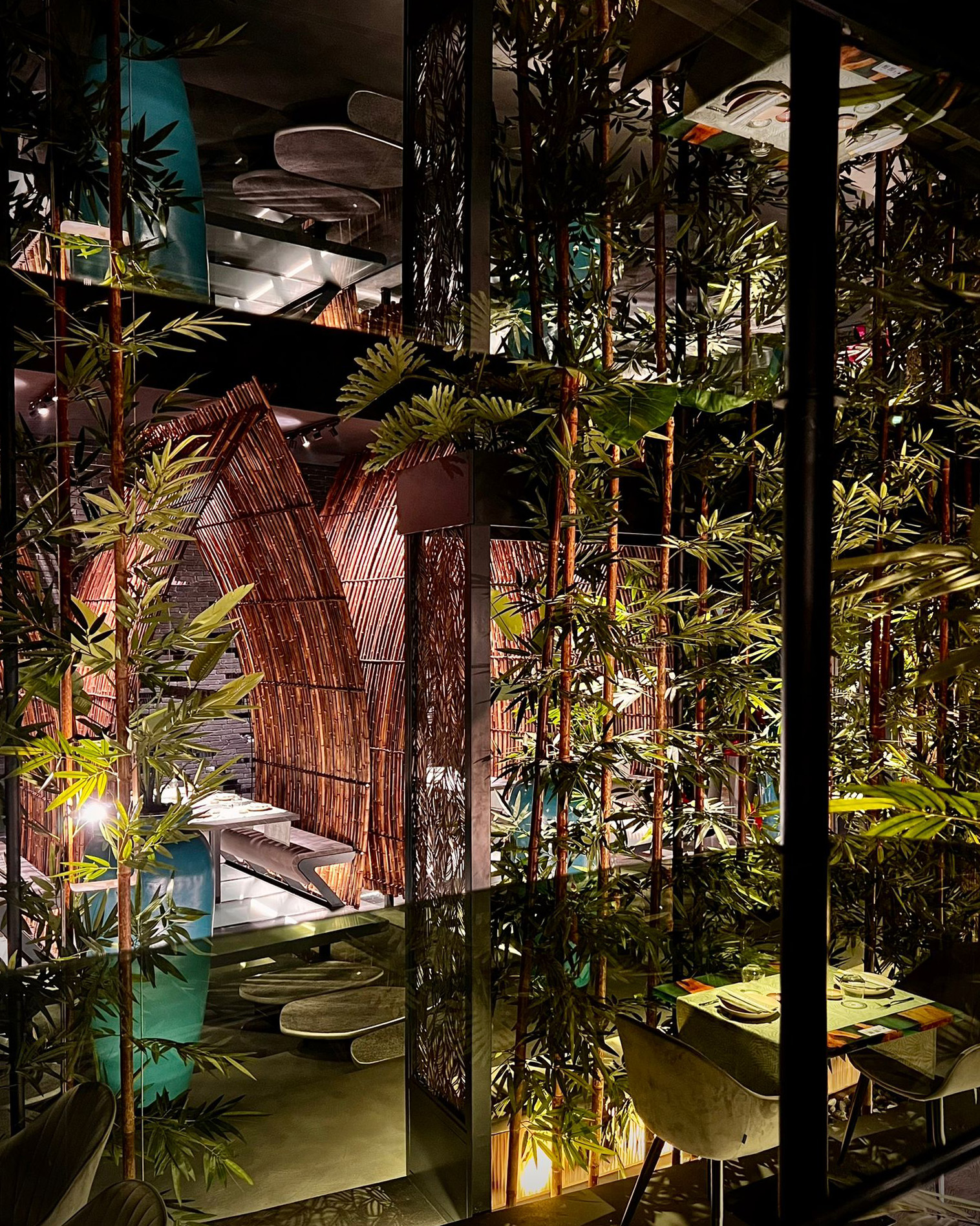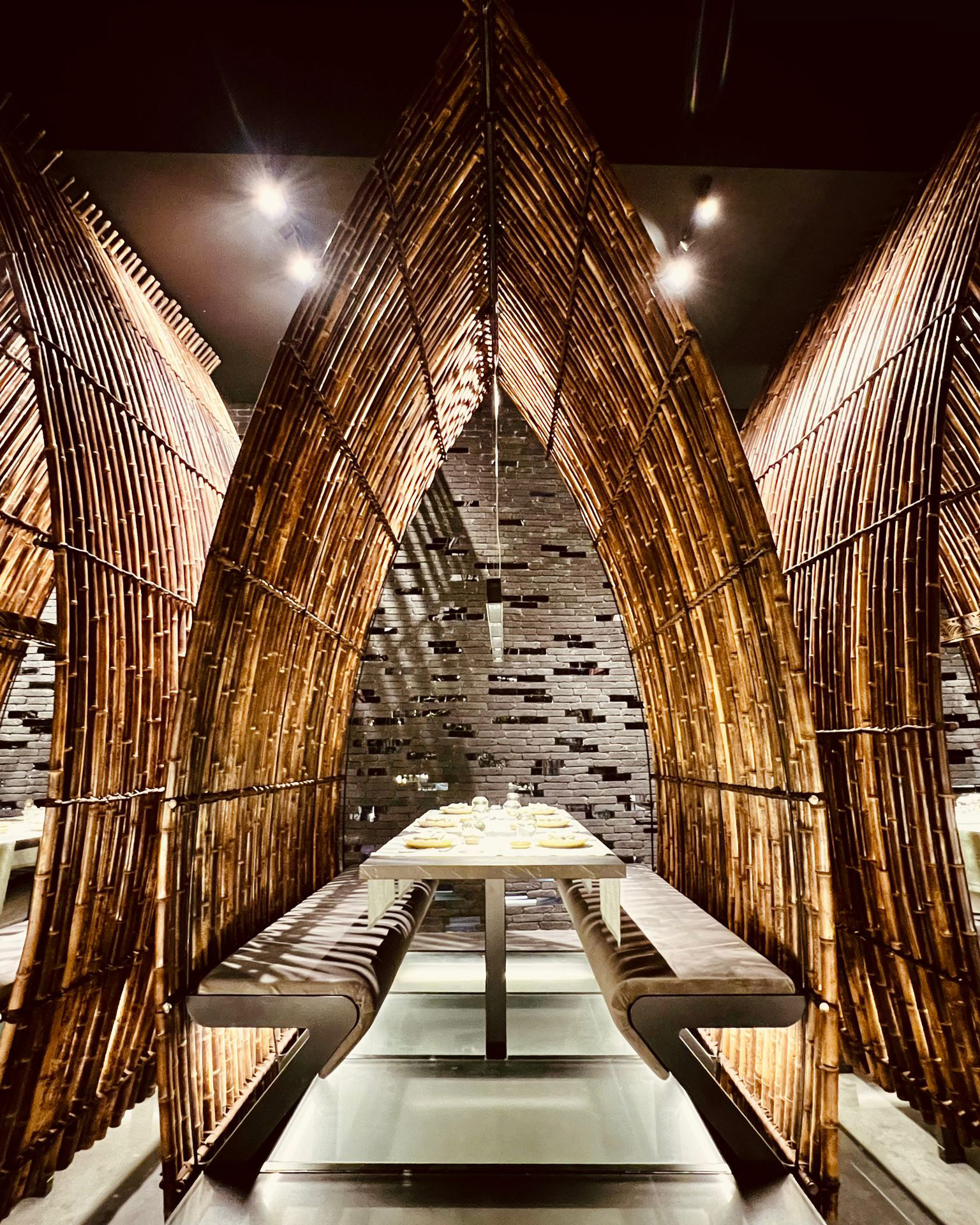 Un progetto che interpreta la materia vetro come elemento d’arredo, contribuendo a definire lo stile unico e contemporaneo del locale.